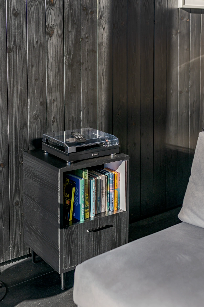 Найбільший будинок у комплексі. Підійде для родини чи компанії друзів. Має дві спальні, простору кухню-вітальня з каміном, книги, вініл і проєктор. Тут вистачить місця для всіх, щоб провести час разом, але і мати свій особистий куточок.
